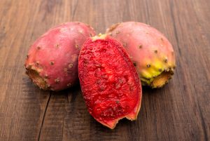Prickly pear fruits are sweet when red. Take care when harvesting prickly pear fruits and use thick gloves and protective clothing.